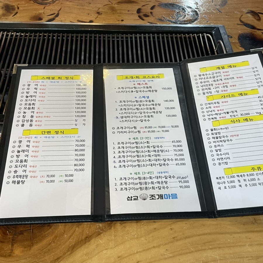 | 조개구이(중) + 회 + 매운탕 | 95,000원 |